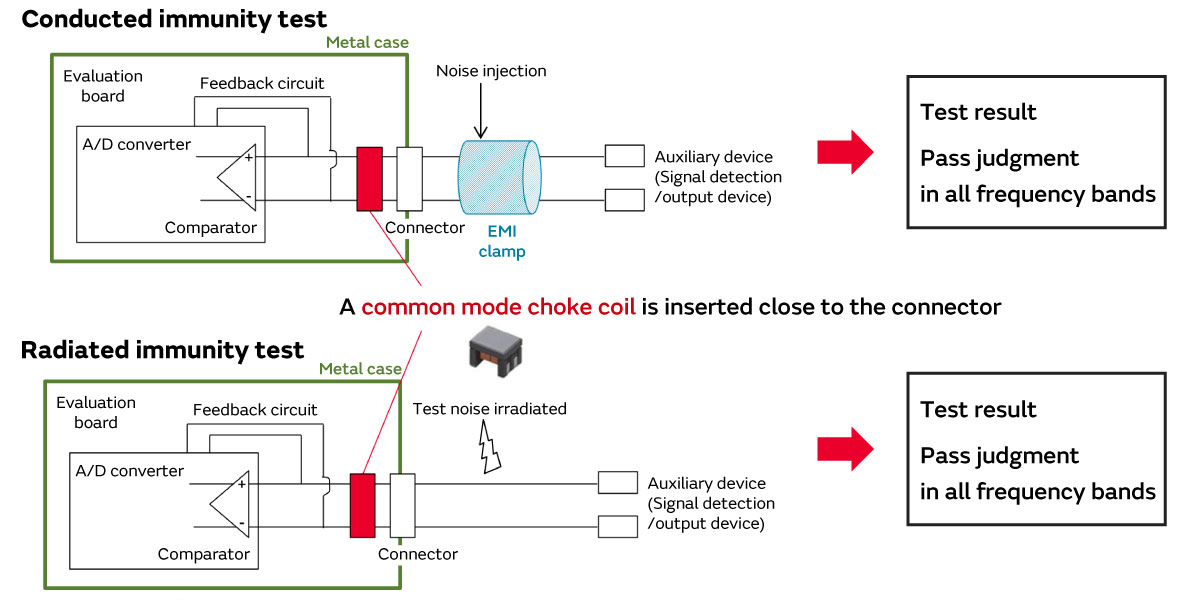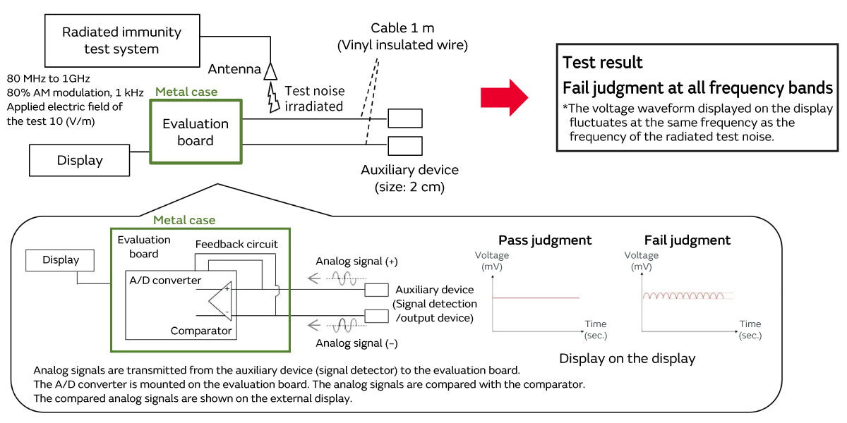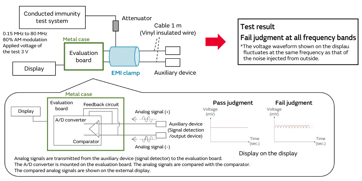 本文介绍了工业设备抗干扰能力提升的实例。目前,尚无正式标准对工业设备的抗干扰能力进行规范。因此,我们参考了适用于工业环境的IEC61000-6-2通用标准,构建了一个抗干扰评估环境。我们使用工业设备设计应用的评估板,研究了抗干扰提升方法,并针对IEC61000-6-2中规定的传导抗扰度和辐射抗扰度进行了改进。