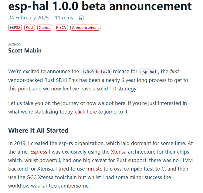 (4) 乐鑫官方发布纯Rust开发套件 esp-hal