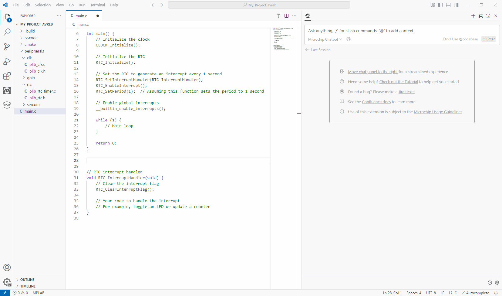 无缝开发和编辑 Microchip 产品特定代码,且比公开的 AI 工具产生更少的幻觉 无需离开编辑器即可访问 Microchip 数据手册 利用自动补全功能,在用户输入代码时提供建议 生成、审查、解释和注释代码 自动化繁琐任务,例如代码注释 提高产品开发的生产力