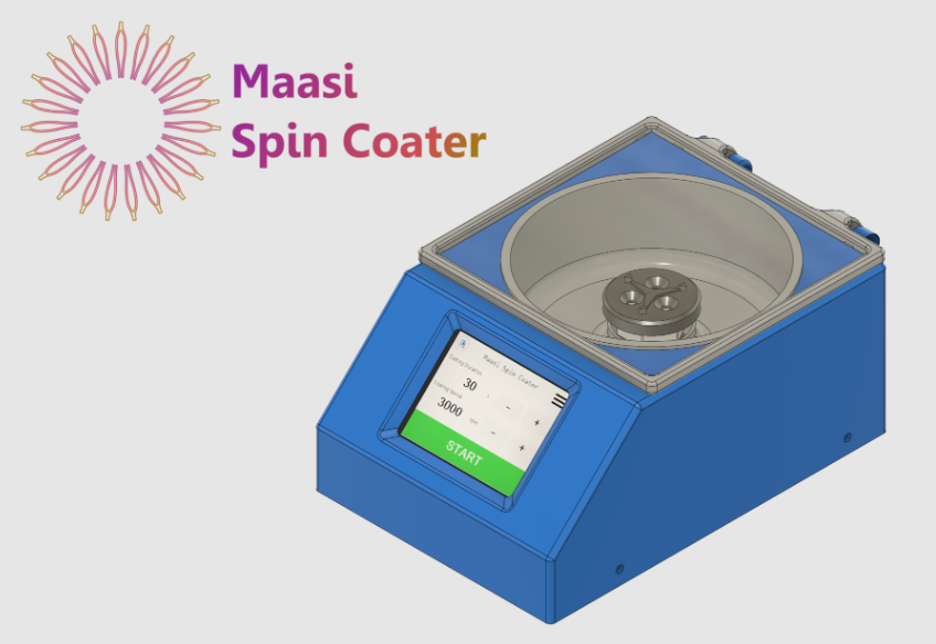 Maasi是一款经济实惠的旋涂机,它易于构建,并具备所有关键功能特性,适用于高达8000 RPM的广泛应用场景。我们的设计成本约为85欧元,组装时间仅需2小时。设计过程中遵循的原则之一是仅使用3D打印部件和价格合理的商用现成(COTS)组件。为了减少部件数量,我们采用了带有遥测功能的电子速度控制器(ESC),从而省去了转子传感器的需求。
