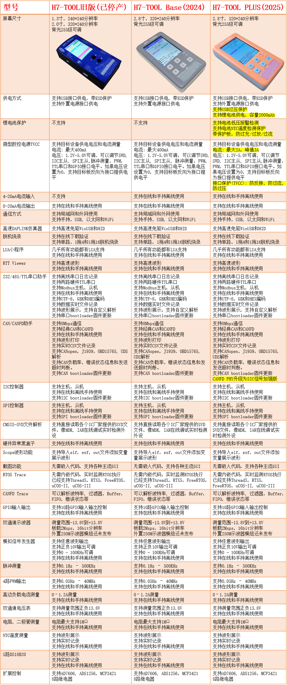 3、今年正式发布H7-TOOL PLUS,继续加强H7-TOOL设计初衷,一款多功能,便携式开发工具。