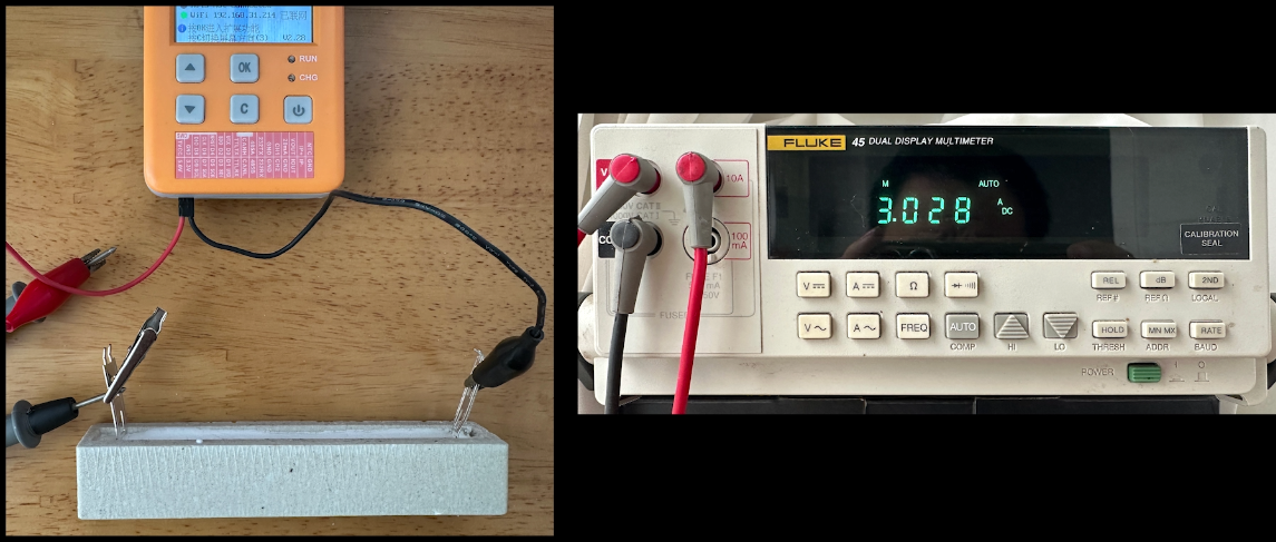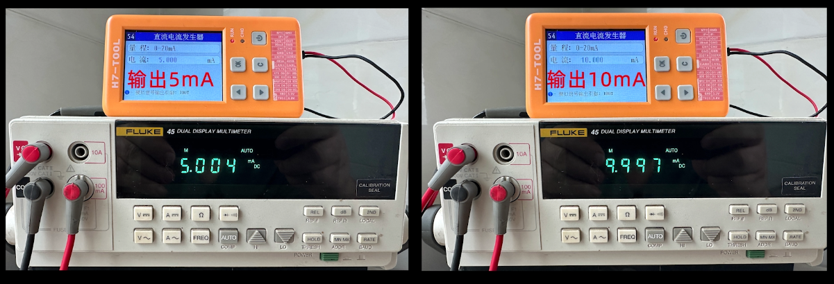 下面是电池供电,分别输出5mA和10mA的实际数值测量