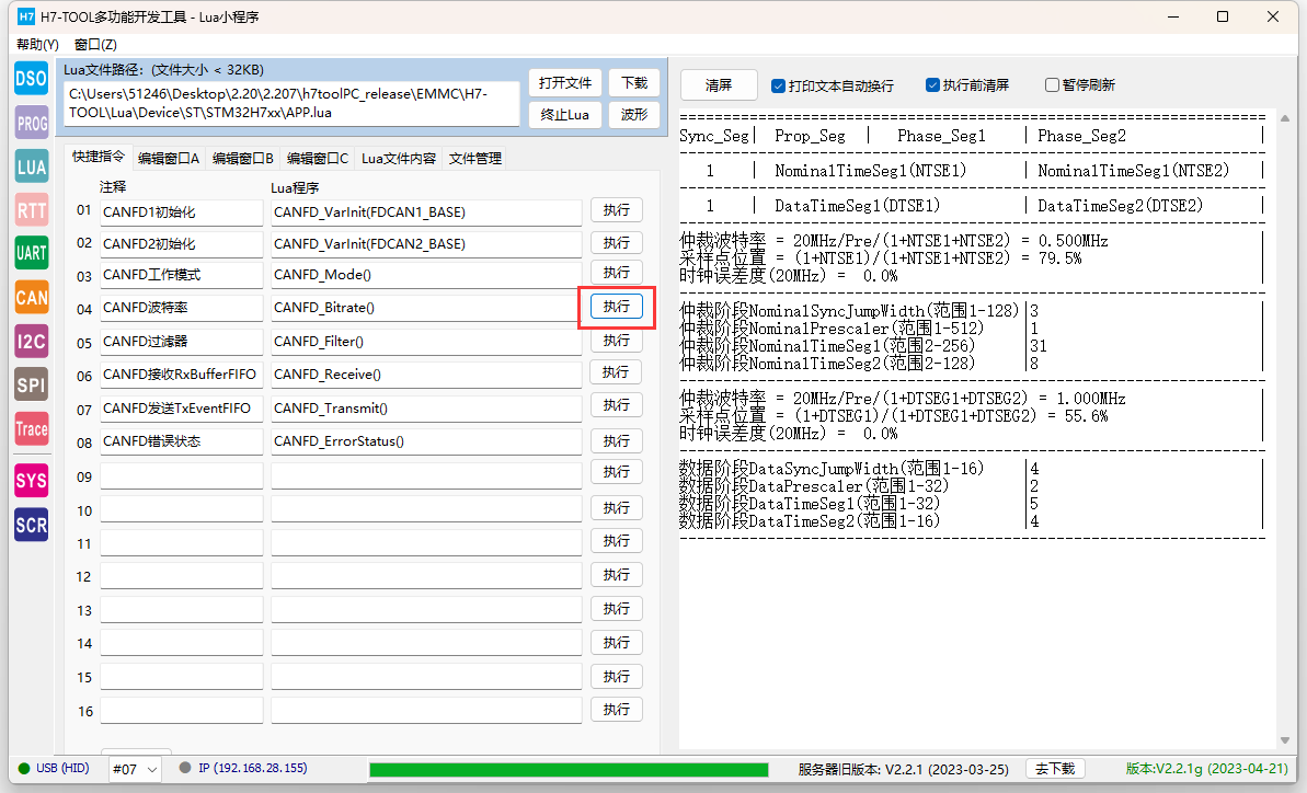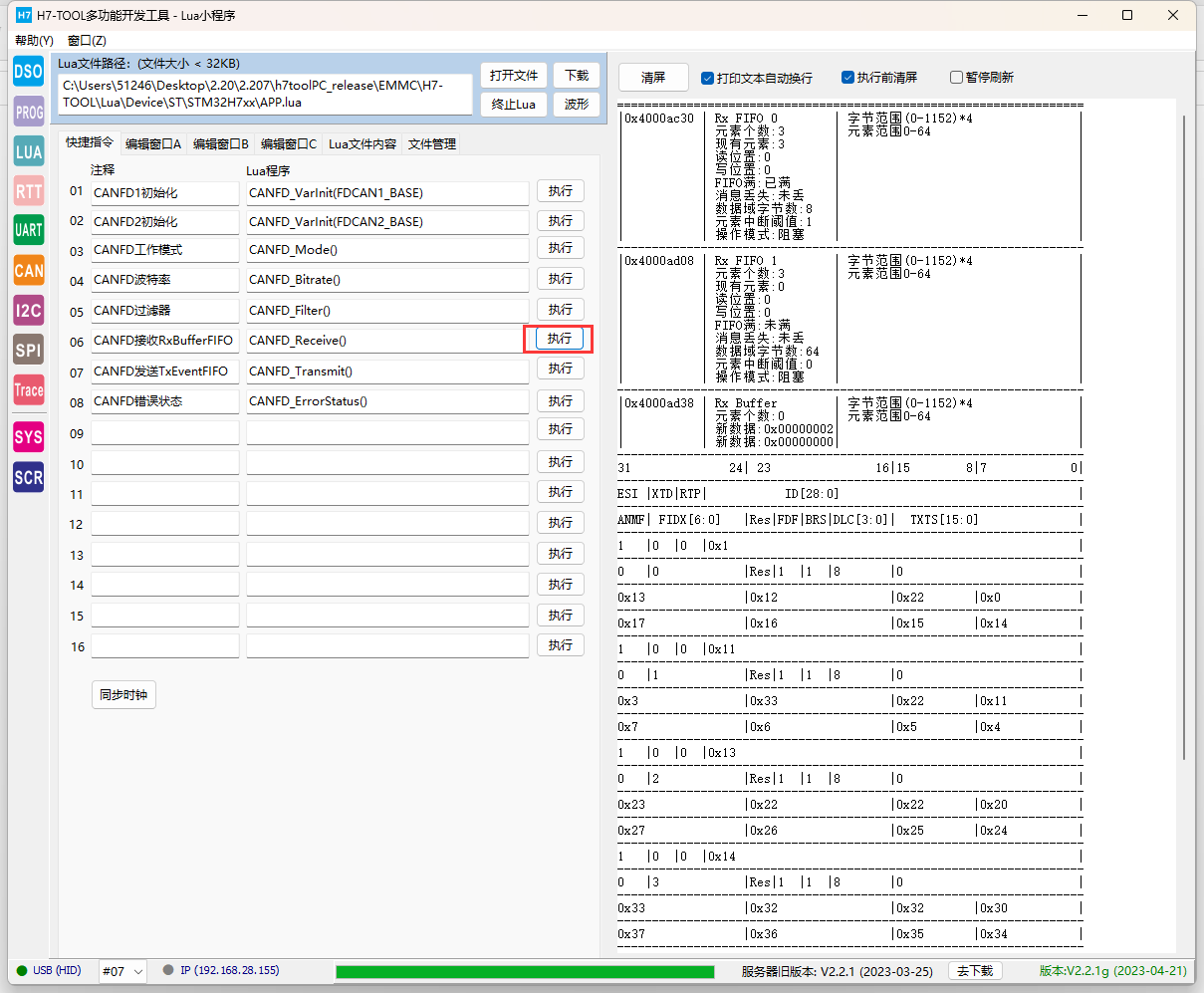 1、可以解析CANFD工作模式,波特率,采样点和是时钟误差率。 2、可以解析所有标准ID过滤器配置和所有扩展ID过滤器配置。 3、可以解析CANFD接收的Rx Buffer,Rx FIFO0和Rx FIFO1数据。 4、通过监测Tx Event FIFO解析Tx Buffer, TxFIFO/Queue的发送事件序列。 5、监测ECR错误计数器和PSR协议状态寄存器。