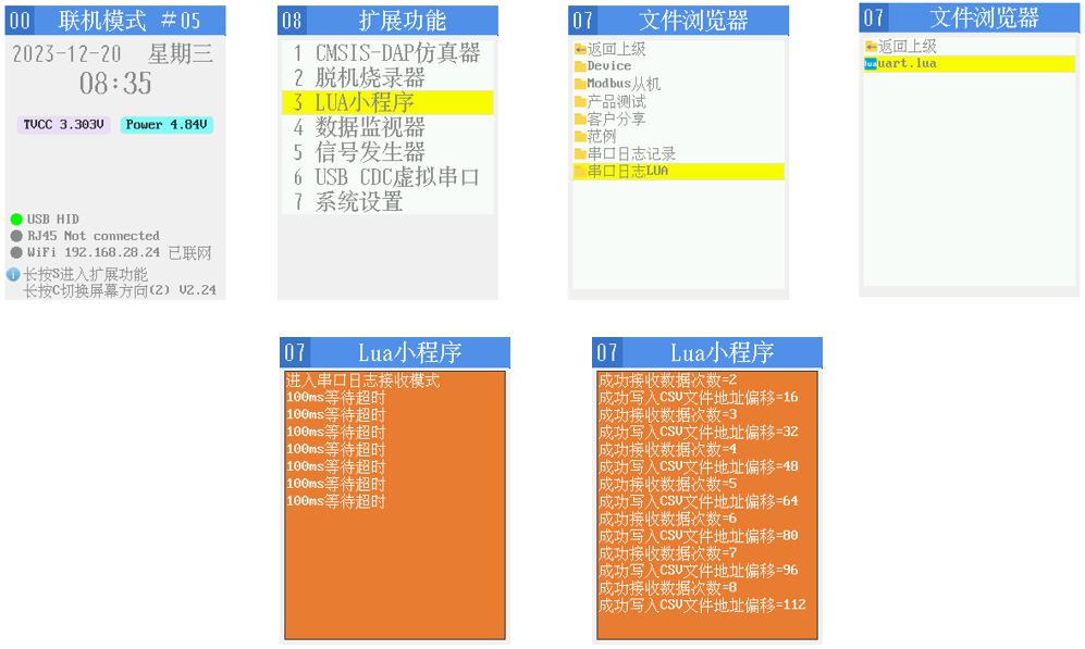 (1)生产线批量设置产品参数、成品检测 (2)研发人员验证电路板模块功能 (3)测试人员测试产品 (4)脱机产品检测,日志记录等 LUA API涵盖内容