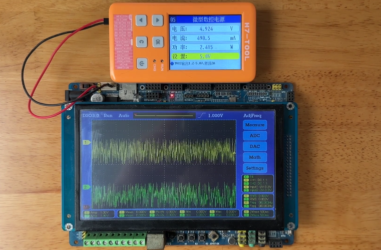 电池供电,微型数控电源输出5V,带开发板运行三代示波器视频效果