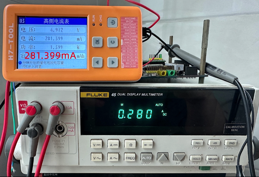 支持0-1.2A测量,实际测试开发板5V供电时,电流情况