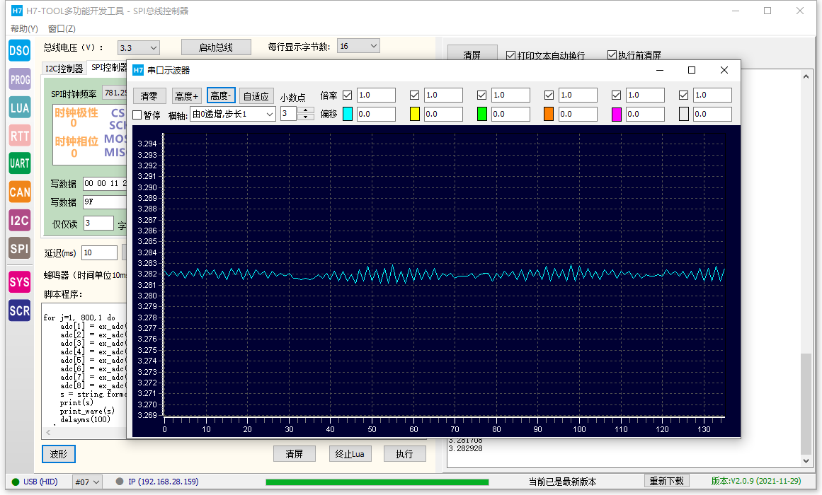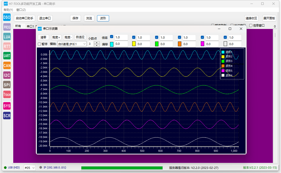 支持UTF-8,GBK和HEX编码,支持6路波形展示,支持Modbus主站和从站,支持自定义解析脚本支持485/232/TTL串口,测试TTL串口3Mbps不丢包。TTL串口电平支持1.2V - 5V设置
