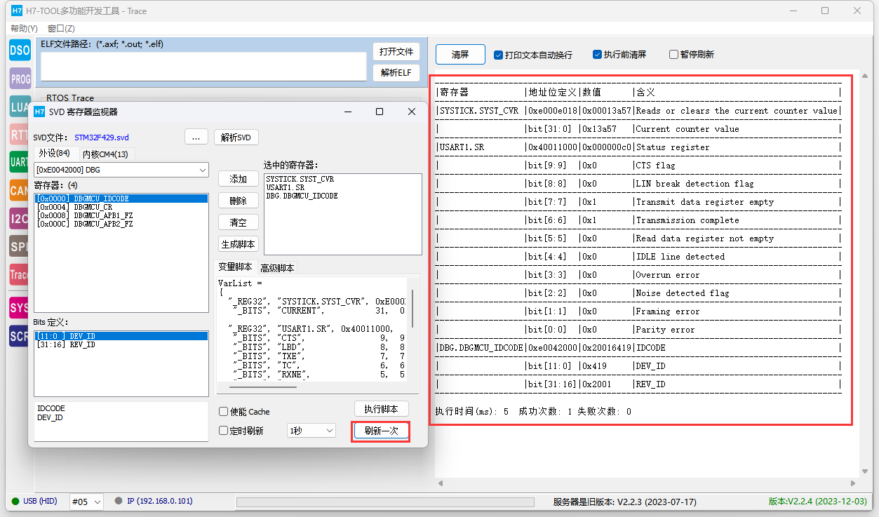 直接读取各个IC厂家提供的SVD文件,像MDK,IAR在线调试实时检测外设,无痛检测,不会复位目标板