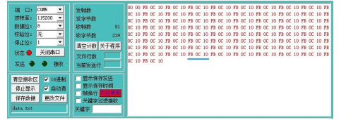 UART 串口波特率 115200, 发送的是 8 位十六进制数据。