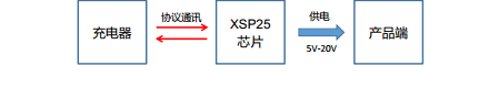 将外部 MCU芯片的RX 连接 XSP25的TX 接口,刚上电时,将外部 MCU的串口设置为高阻态,不能给 XSP25 的串口电压,否则会影响到芯片取电,等待 3-4 秒左右即可读取,外部设备的 MCU 读取到功率信息后,可以根据充电器的功率调整负载的大小。