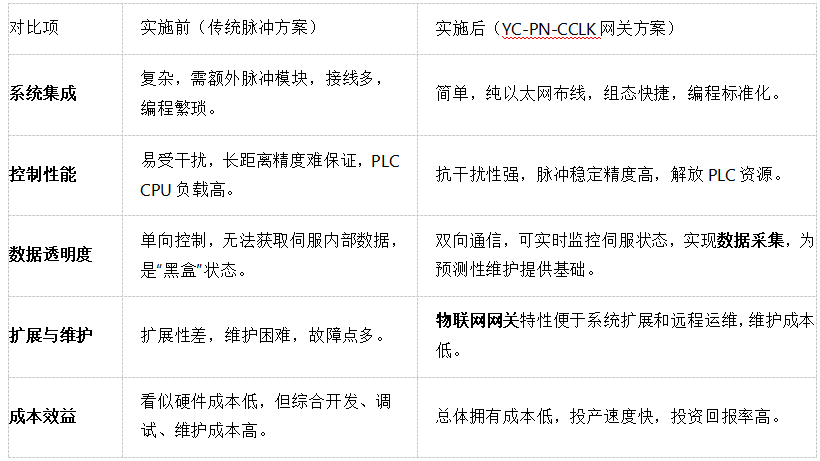 双向数据交互:它不仅向伺服发送脉冲指令,还能通过Profinet网络将伺服的状态信息(如使能状态、报警信号等)反馈给PLC,实现了初步的数据采集器功能。