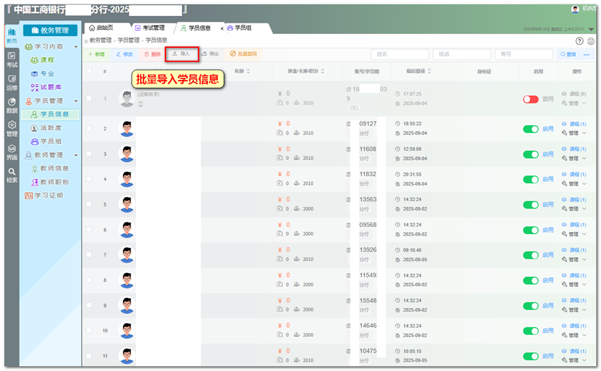 针对银行组织架构复杂、人员众多的特点,系统提供了高效的学员管理功能。