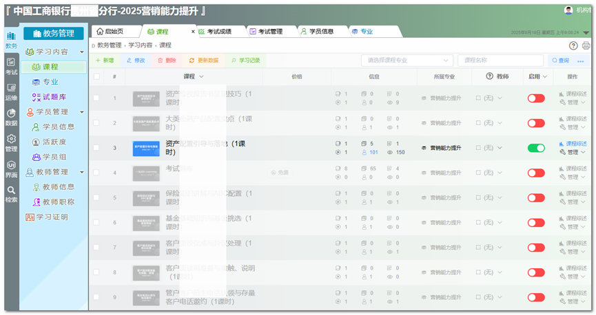系统提供强大的课程管理功能,助您轻松搭建体系化的“银行知识库”。