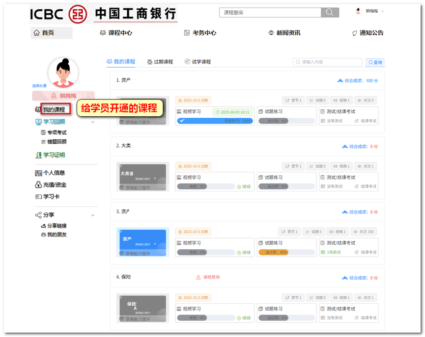 - 为学员单独开通专属课程:管理员为学员单独开通某些课程,满足个性化培训需求。