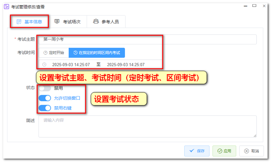 - 参数自定义:可详细设置考试时间、答题时长、及格线、参考次数、试卷显示模式等,满足各类严肃性考试与日常练习的不同需求。