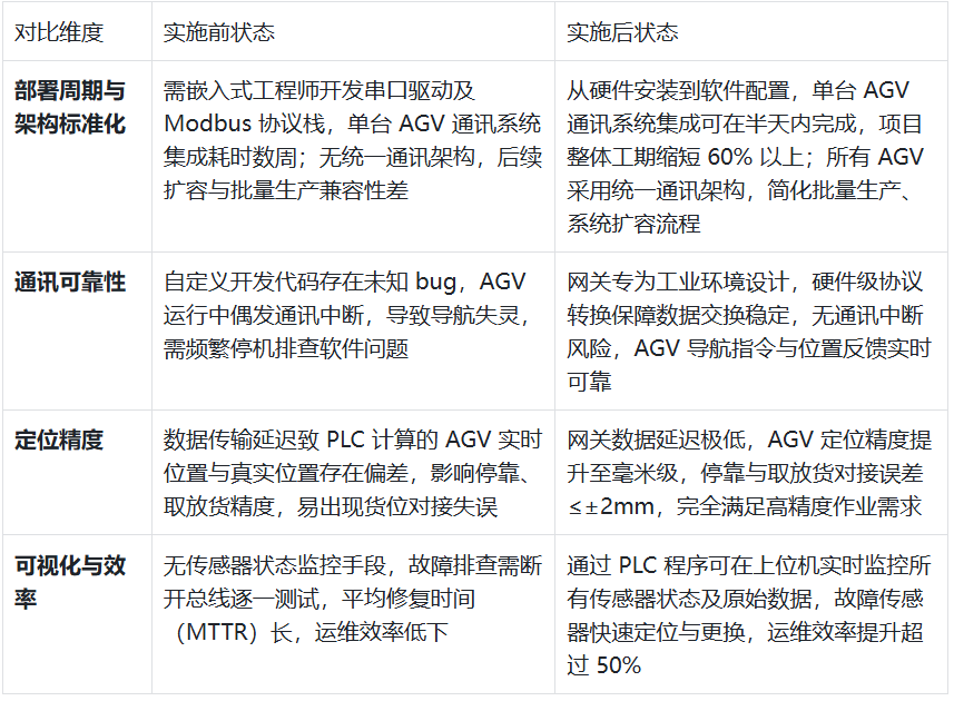 3. 集成复杂度与成本:若为AGV主控板卡额外开发串口并编写复杂的Modbus协议解析程序,将大幅增加硬件改造成本和软件开发周期,且稳定性难以保证。