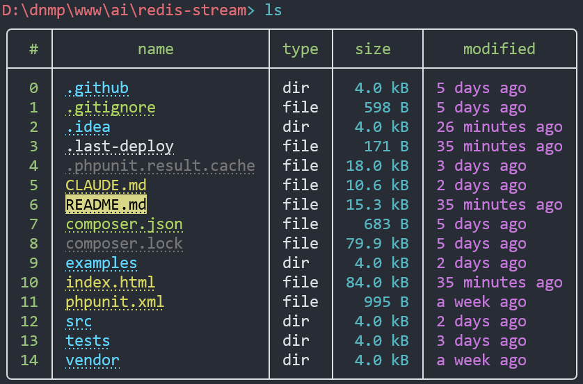 NuShell 的学习曲线平缓,因为它保留了 Unix 管道的精髓,但加持了智能语法。启动后,你会发现 ls 不再吐出一堆乱码,而是整齐的表格: