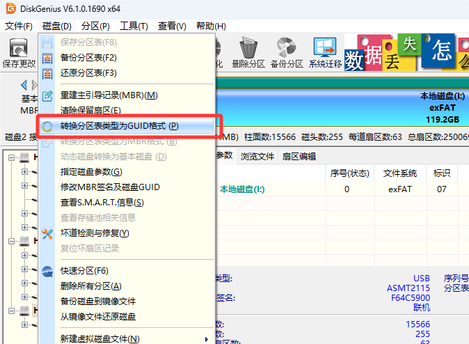 方法2,使用DiskGenius进行转换。支持对非系统磁盘的转换,并且转换过程不会删除文件。