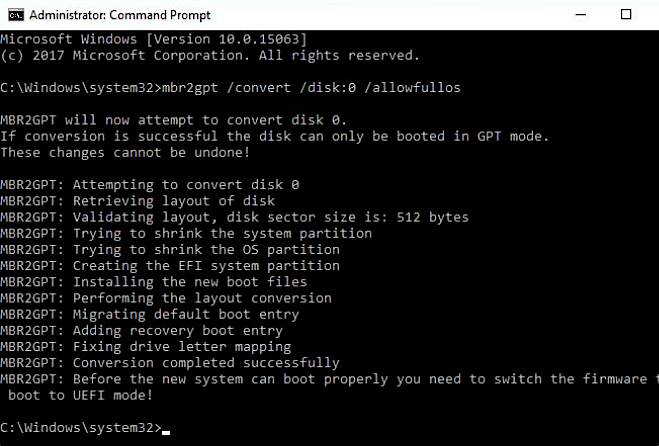 mbr2gpt /convert /disk:0 /allowFullOS