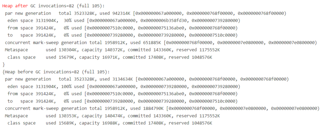 GC日志显示很明显,通过GC日志可以粗略分析如下:Minor GC触发次数:82 Full GC触发次数:105次