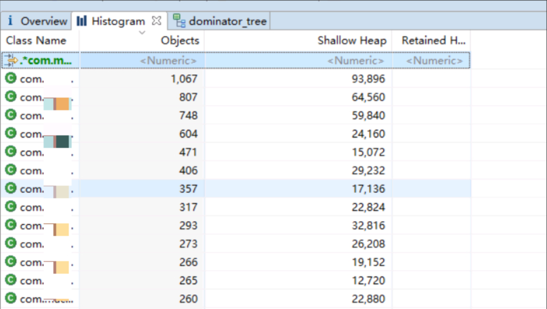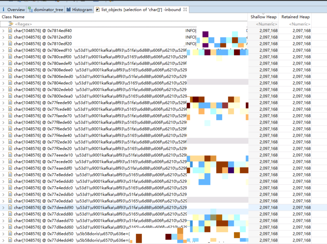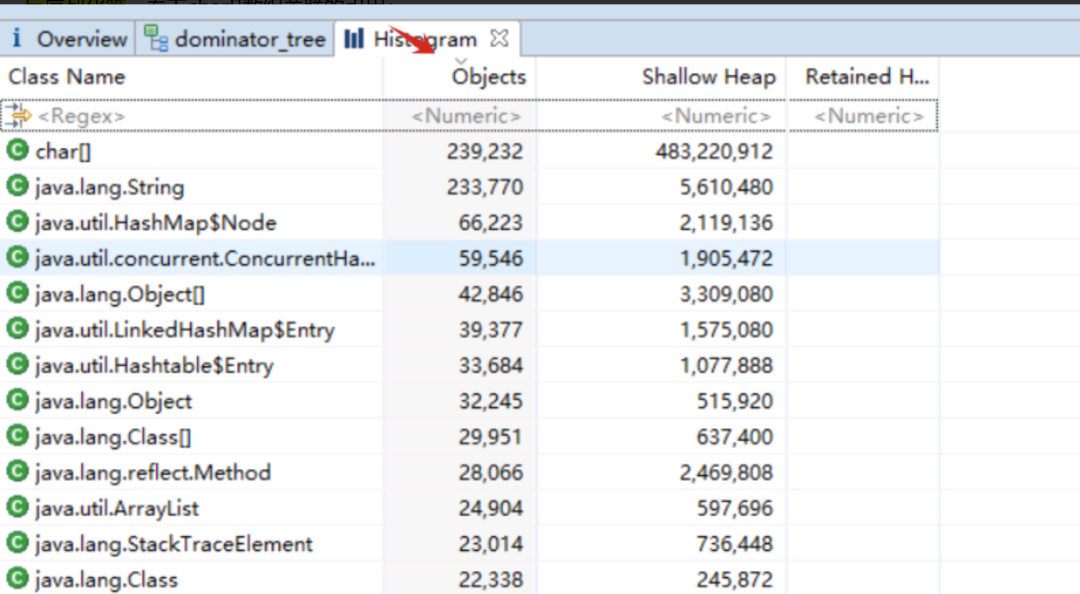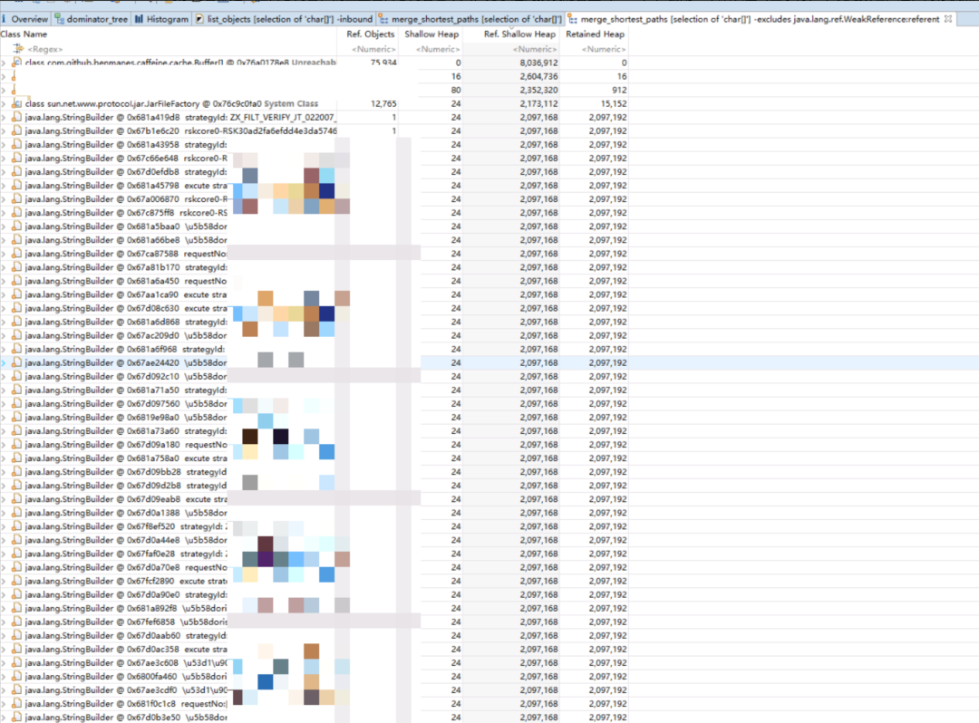 看到这个图好像是发现问题了,Shallow Heap大小都是固定的值2MB+