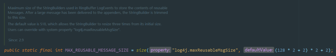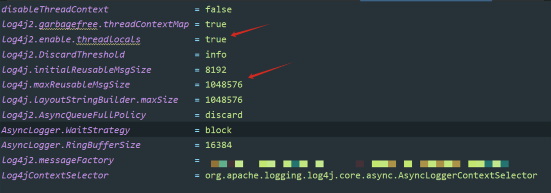 2、log4j2.maxReusableMsgSize顾名思义这个配置即为缓冲区大小,定义了每个线程本地缓存中 StringBuilder 缓冲区的初始容量。