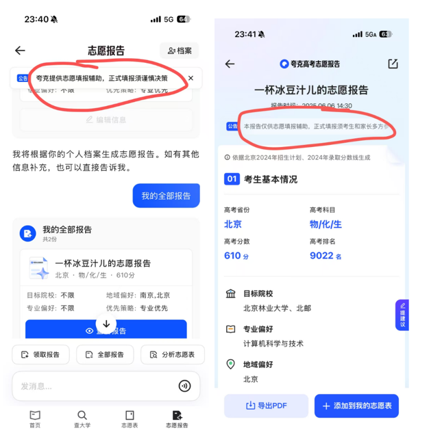 夸克的志愿报告Agent在提供决策支持上无疑取得了巨大的技术突破,但在用户层面,一个新的问题悄然浮现:“我到底能信AI到什么程度?”