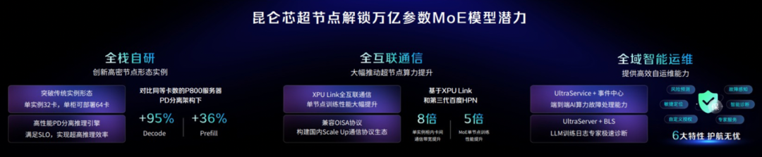 面对这一趋势,百度依托昆仑芯P800及昆仑芯超节点,为企业构建坚实可靠的算力底座,具体能力体现在以下几个方面: