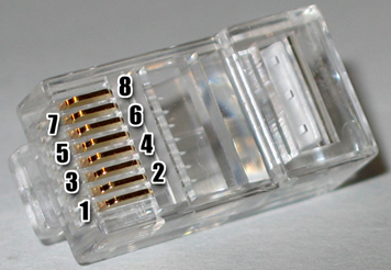 实际水晶头(RJ-45插座)对于的线序如下: