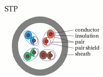 双绞线外的金属网(通常是铜质)可以进一步屏蔽传输线,使之不受外部电磁场干扰,同时作为接地之用。但这种额外的保护结构降低了线材的弹性。这种线常用在以太网(局域网络)中,屏蔽双绞线额外的保护结构提高了此种线材的价格。