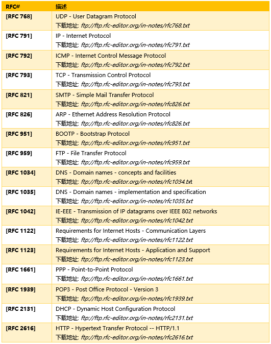 大家在学习中需要了解具体的网络协议,可以直接上官网:https://www.rfc-editor.org/ 搜索即可,这里将主要的几个协议地址罗列出来,方便参看。