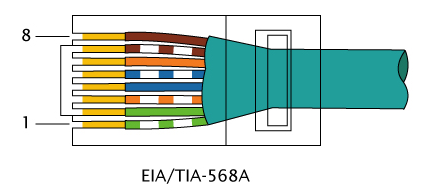 EIA/TIA 568A的线序定义依次为绿白、绿、橙白、蓝、蓝白、橙、棕白、棕(从序号1开始)