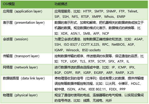 开放系统互连参考模型 (Open System Interconnection Reference Model,简称OSI)是国际标准化组织ISO和国际电报电话咨询委员会CCITT联合制定的开放系统互连参考模型,为开放式互连信息系统提供了一种功能结构的框架。它从低到高分别是:物理层、数据链路层、网络层、传输层、会话层、表示层和应用层。