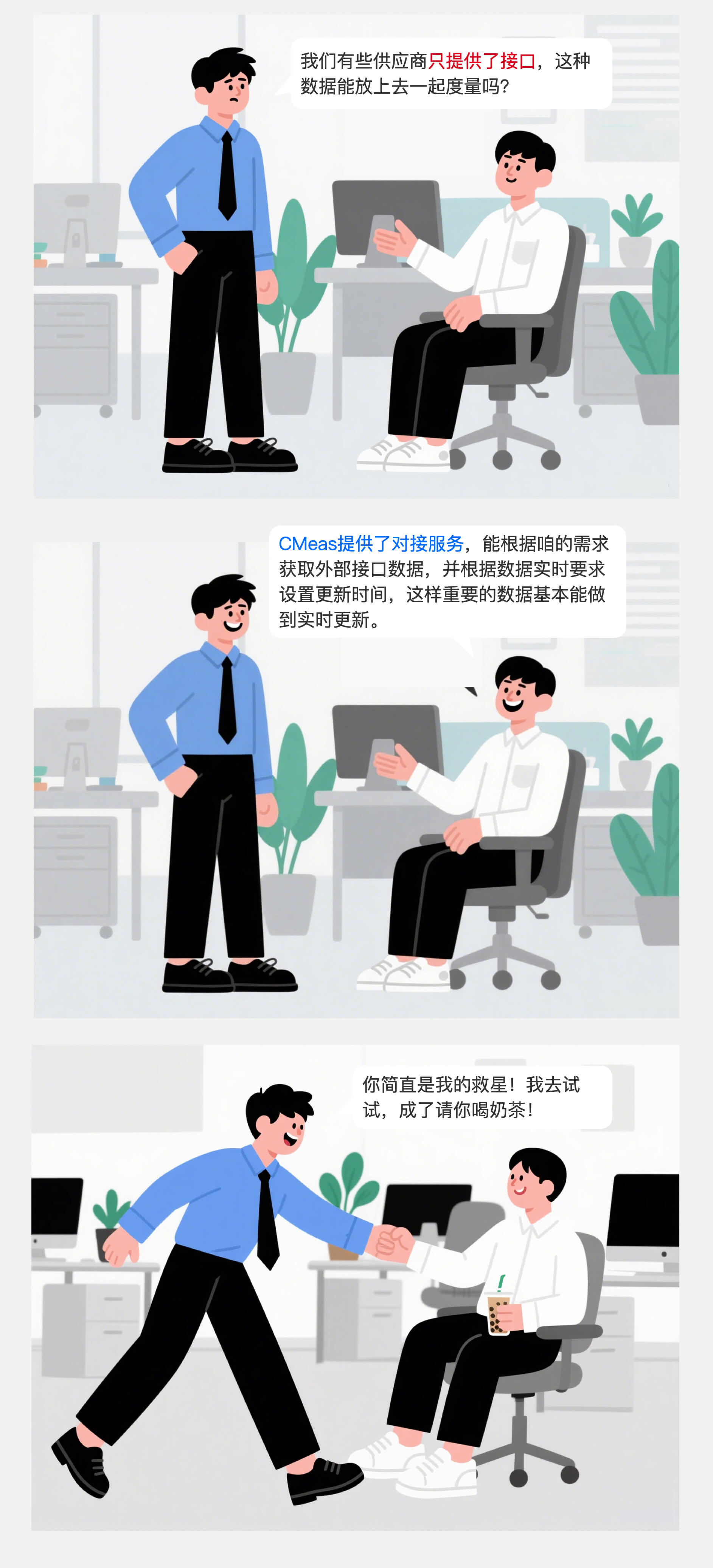 • 直连接入多种数据源数据,实现跨系统度量。 • 可对接第三方接口,实时获取数据。 • 可自定义数据获取频率。