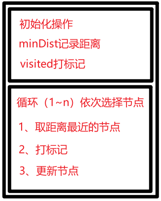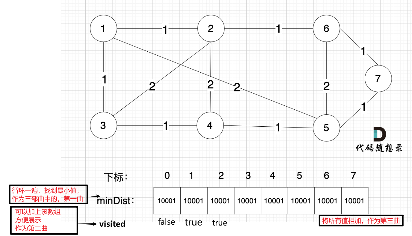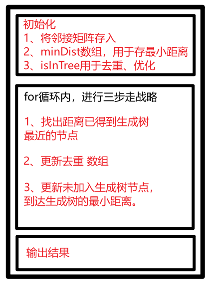 从顶点出发的贪心思想, 每次循环都会连接一个 距离生成树 距离最近 的节点。