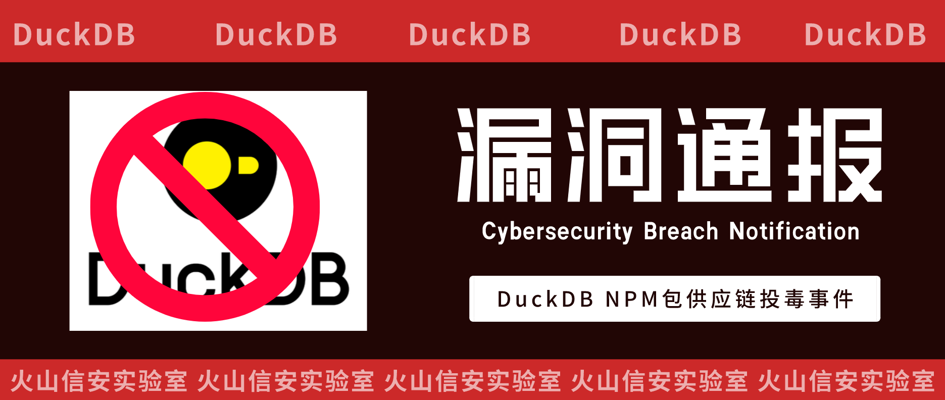 近期,火山信安实验室监测发现,,DuckDB的Node.js和Wasm软件包在NPM供应链攻击中被植入恶意软件,攻击者通过劫持开发者账户发布恶意版本,利用供应链投毒手段在包中嵌入加密货币窃取后门。此次事件被追踪为CVE-2025-59037,属于高危供应链安全漏洞。