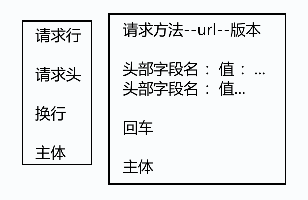 起始行 | 请求行(Method URL Version) 例:GET /weather?city=北京 HTTP/1.1 | 响应行(Version StatusCode StatusMessage) 例: HTTP/1.1 200 OK |