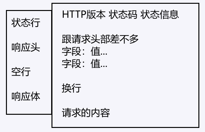 头部 | 包含客户端信息(如 User-Agent、Cookie) | 包含服务器信息(如 Server、Content-Type) |