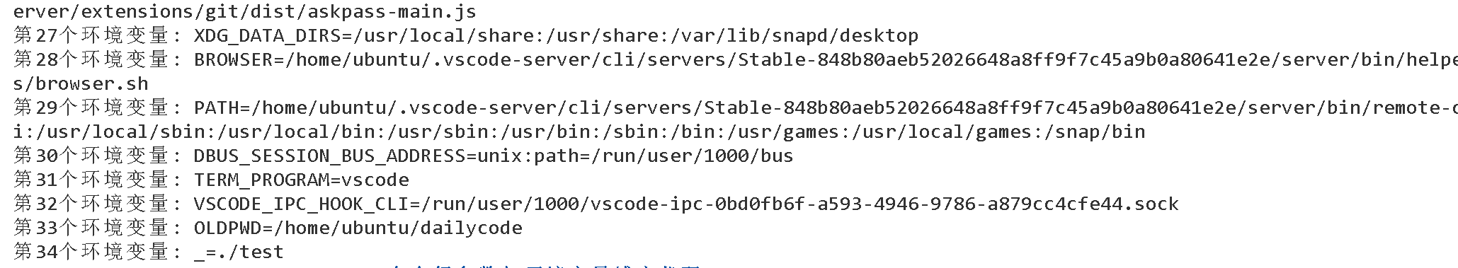 刚刚我们只展示了main函数的两个参数,但实际上,在 C 语言 中,除了标准的 argc 和 argv 之外,main() 函数在某些环境下(如 Linux/UNIX 系统)还可以接收 第三个参数 envp,用于访问 环境变量。