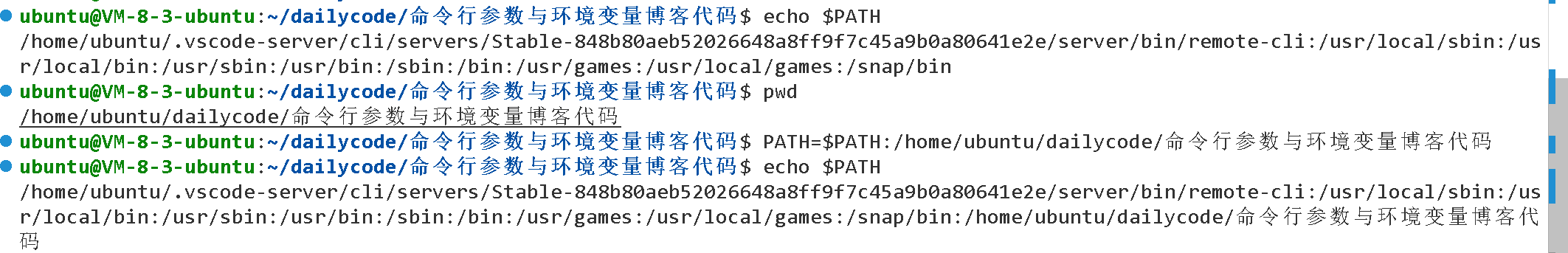 PATH="/home/ubuntu/dailycode/命令行参数与环境变量博客代码:$PATH"