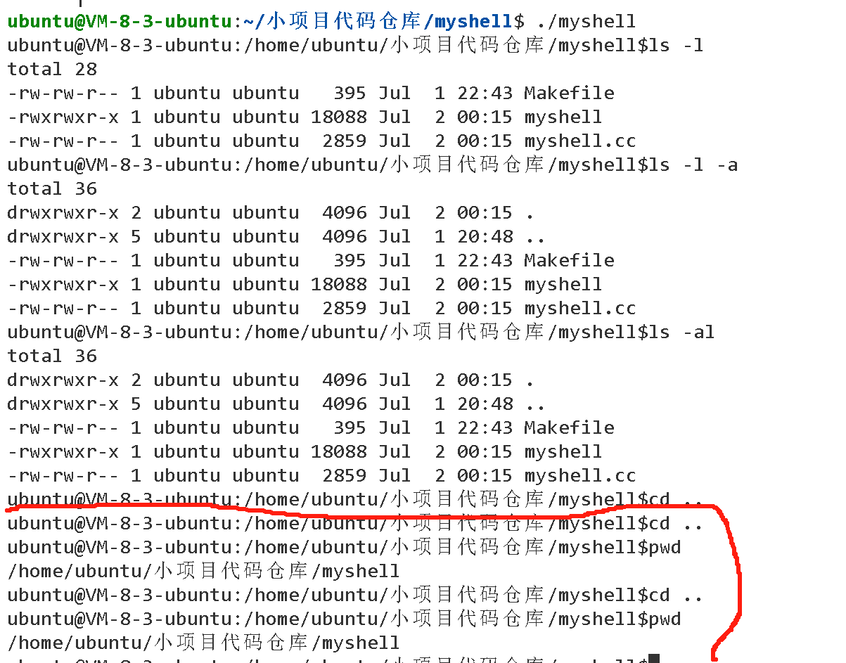 比较之后,如果判断是cd指令,我们就使用chdir这个函数改变Shell自己的当前工作路径。