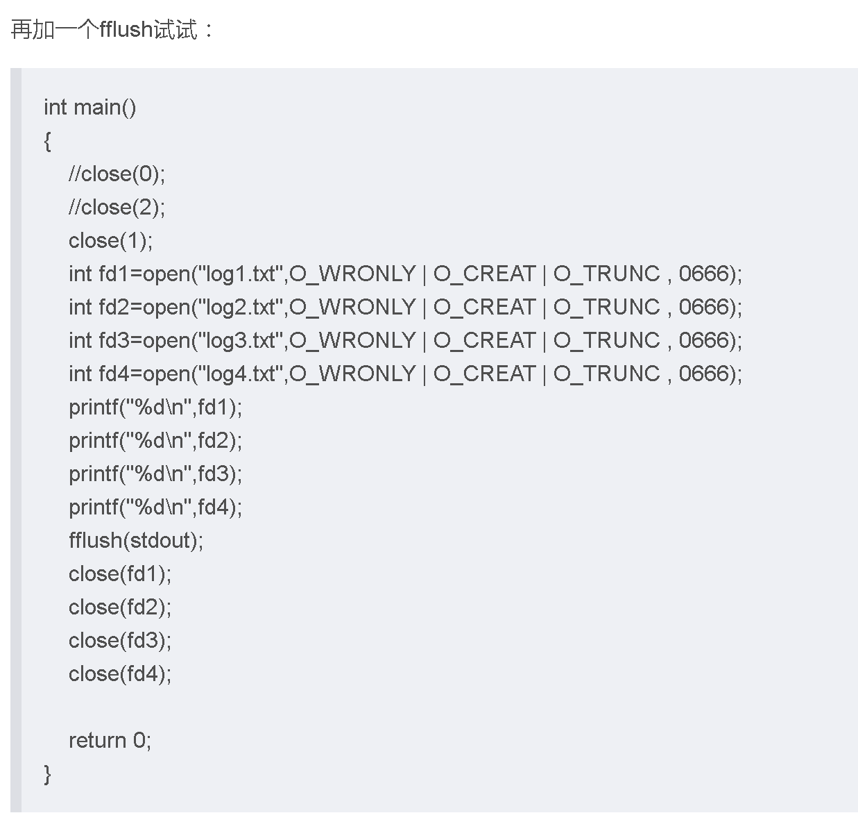 为什么把后面的close(fd)去掉后,文件中就存在打印结果了呢?