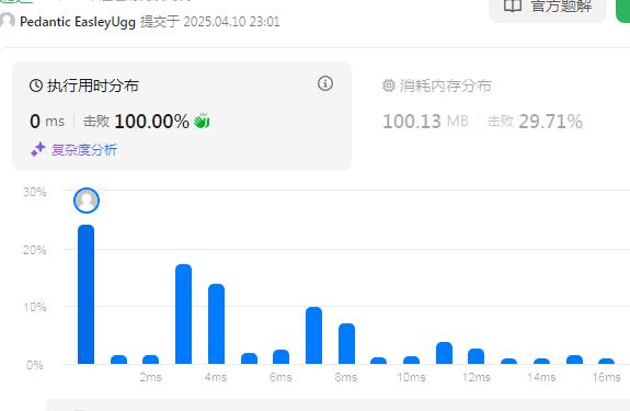 虽然有循环嵌套,但是我们的时间复杂度仍然是O(N)这个级别的(0ms也是小编多次提交才得到的,如果不是0ms也不必慌张)。