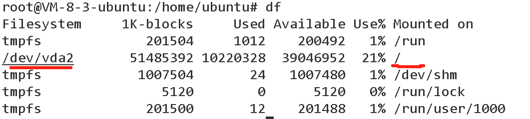 其他文件不用管,tmp的都是临时分区。我们可以看到,我们的vda2分区就挂载到了我们的根目录上。通过挂载,我们判断当前路径的前缀是否符合(比如最近一个符合前缀是/,那我们就知道他是在分区1上的),就能够知道我们在哪一个分区上!