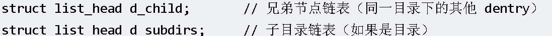 struct list_head d_subdirs; // 子目录链表(如果是目录)
