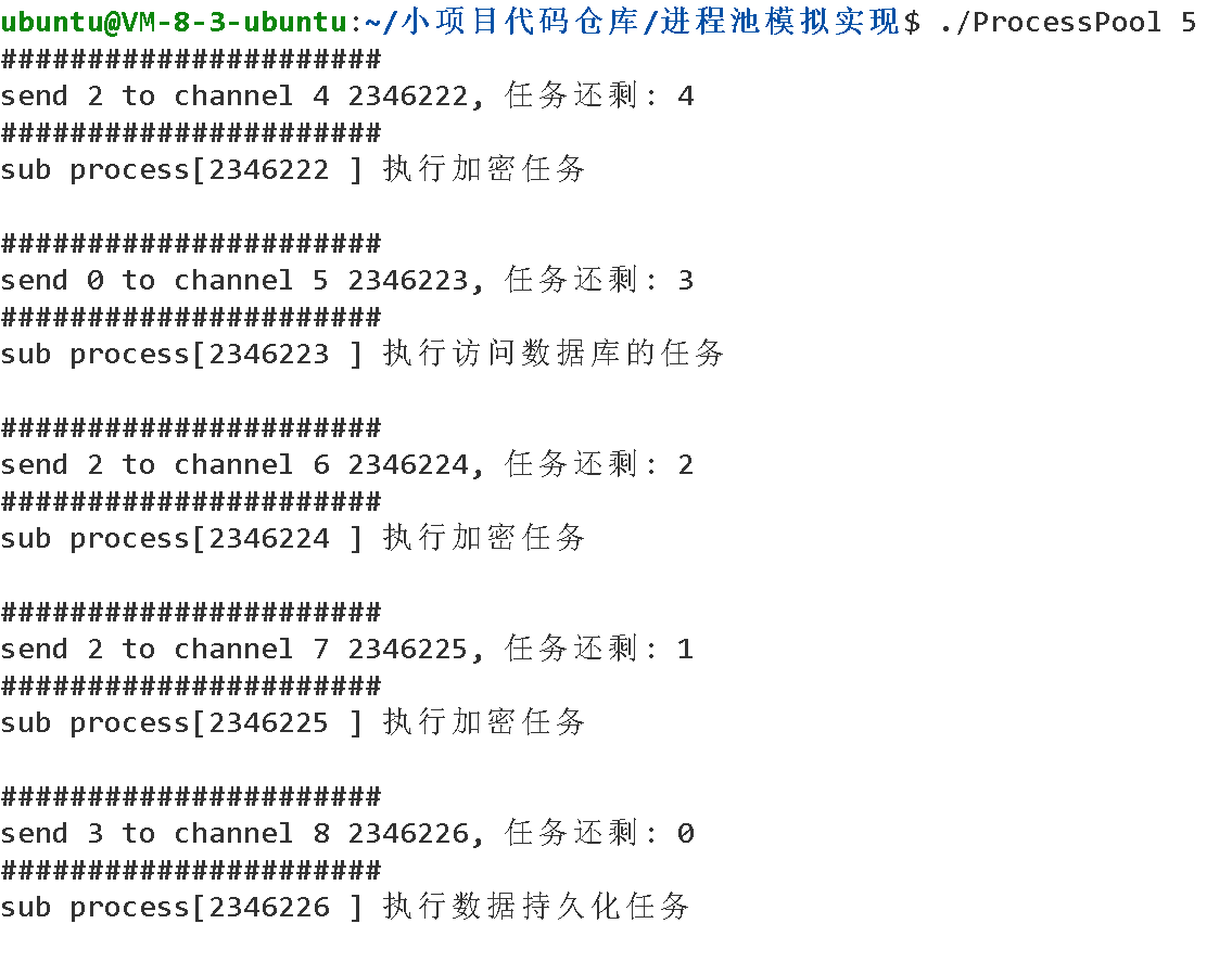 通过以上操作,就能有效避免频繁创建和销毁进程的开销,并且可以通过一定规则分配任务,防止某一个进程任务繁忙过载。