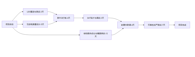 问题找到了,但时间不等人。摆在我们面前的是一堆复杂的任务:重新设计功放外围电路、更换LDO并重新验证、修改结构以优化散热、联系模具厂改模、重新进行各项可靠性测试……
