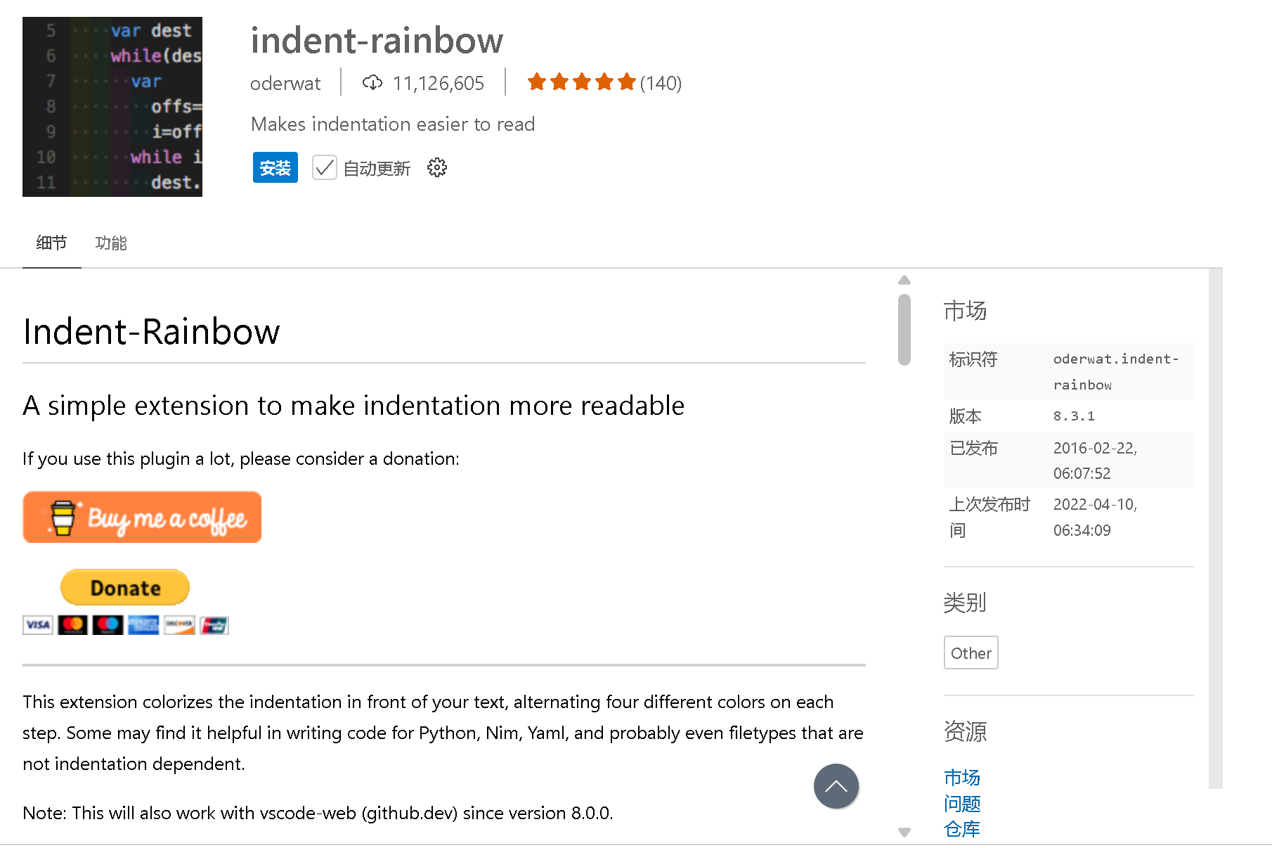 缩进错一格,调 bug 半天。 Indent Rainbow 给缩进层级染色,像彩虹一样,不同缩进用不同颜色,结构层次一眼明了。