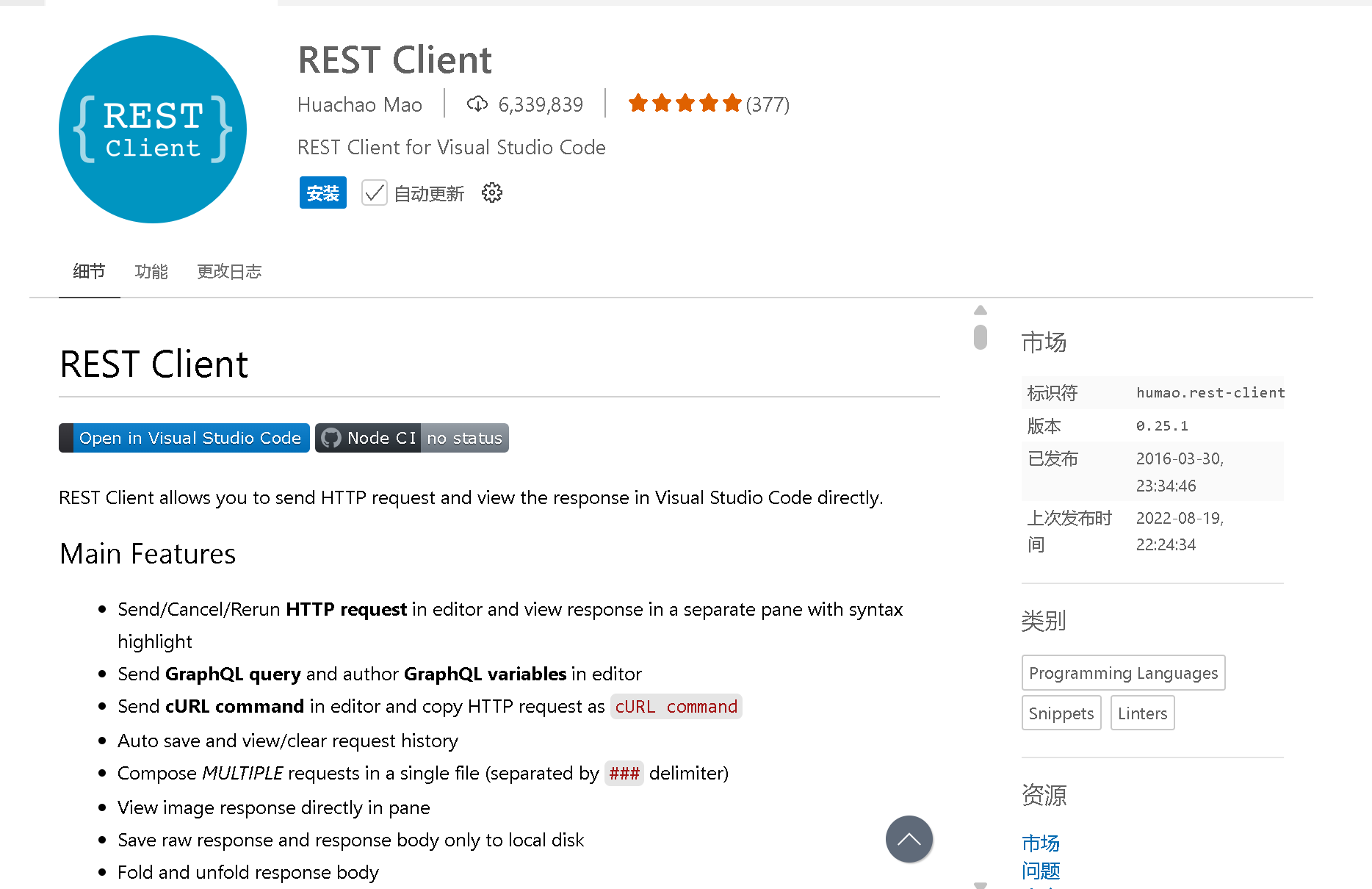 REST Client 允许你在 .http 文件里写请求,直接发送,结果展示在编辑器里。
