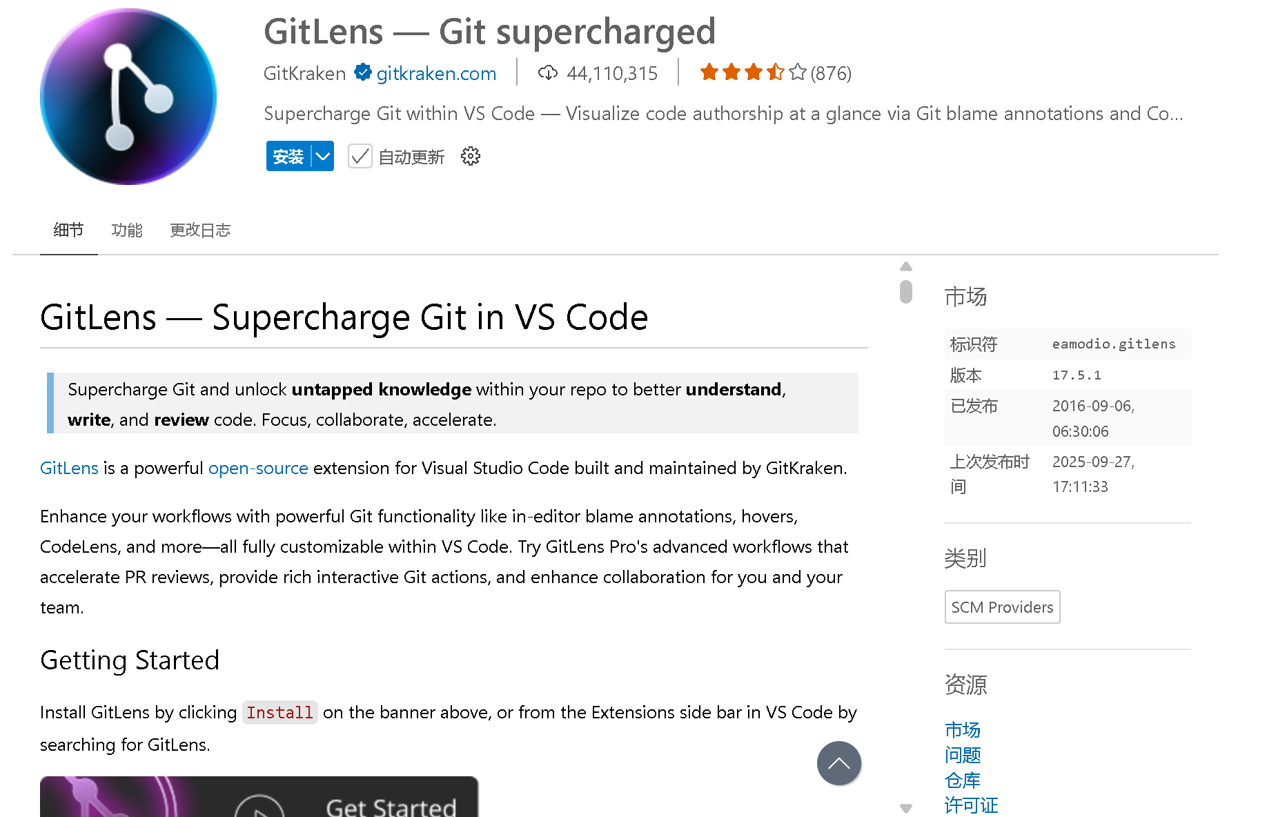 想追溯 bug 的时候,不用翻命令行,直接「秒知道谁干的」。 同时还能可视化 commit 历史,非常适合团队协作。